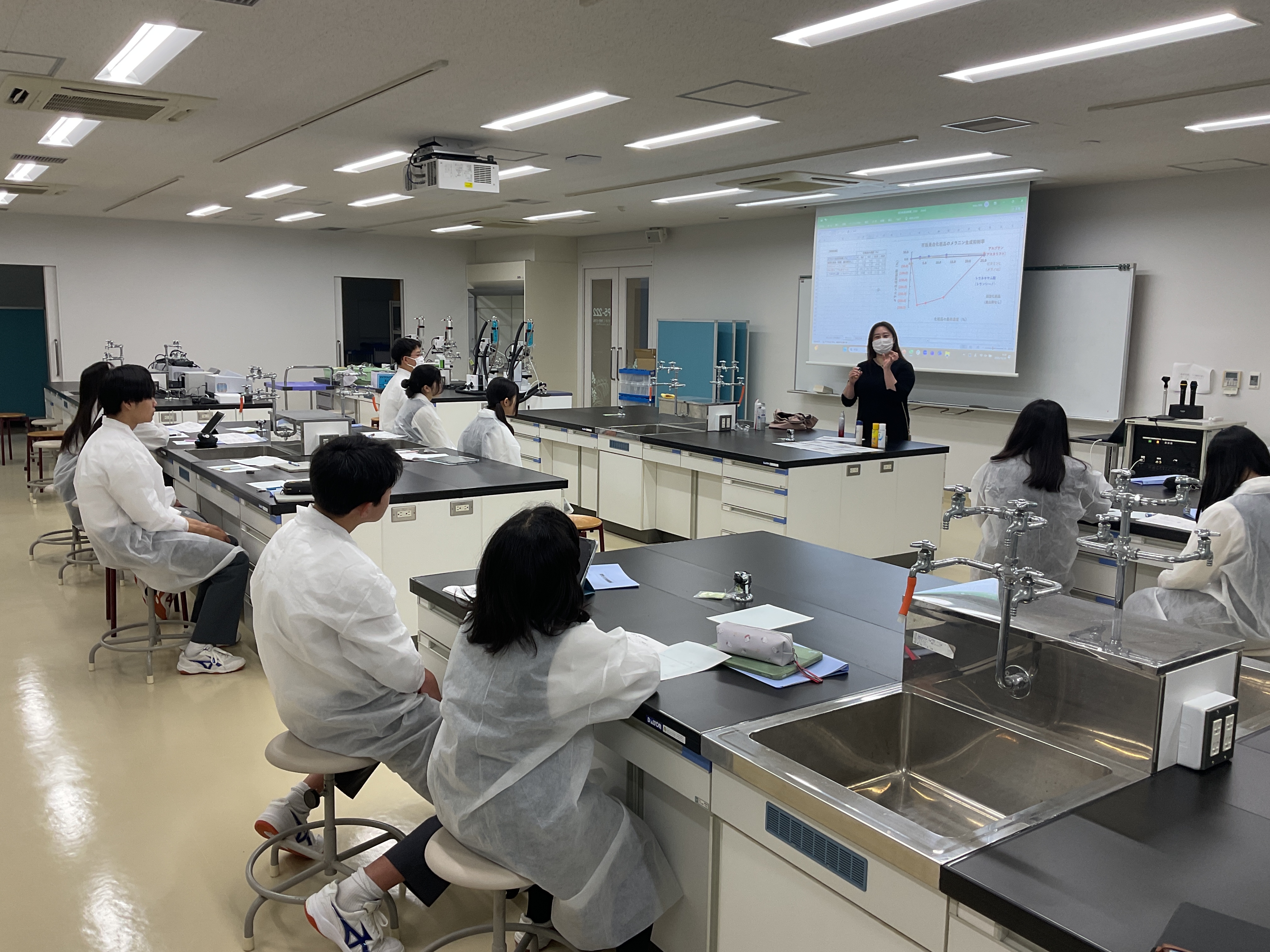 「美白剤にはいろいろな種類があり、今回の実験系だけでは評価しきれない成分もある」という、非常に鋭い考察を発表してくれました。ただ実験書通りにやるだけでなく、うまくいかない過程も含めて考察する姿勢は、すでに立派な研究者でした。