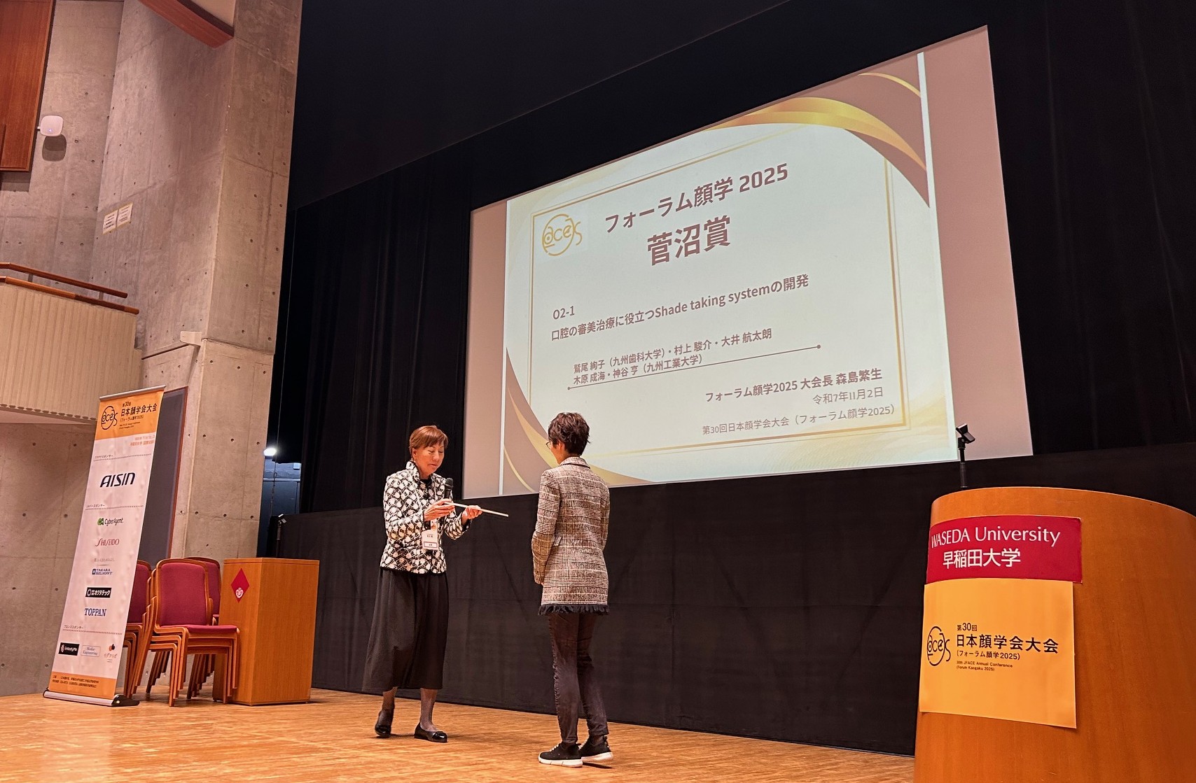 そして学会の最後には、今回の口頭発表、ポスター発表の中から、菅沼先生が素敵と思った発表を表彰する「菅沼賞」として、「口腔の審美治療に役立つShade taking systemの開発」というテーマで口頭発表された、九州歯科大学の鷲尾 絢子先生が表彰されました。おめでとうございました。