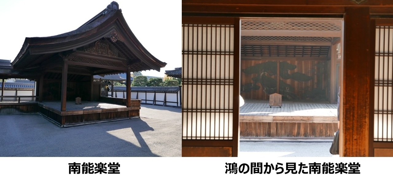 さらに、「鴻の間」の縁側の方向にある南能舞台に書かれた松の絵が、外の光がはいる縁側からみると黒くほとんど見えないのに、部屋に入って振り返ると美しい深緑の松が現れ、みんなでほーっ!と声をあげました。これは「隠し絵」と呼ばれるものらしく、おそらく太陽光線の特定波長で黒くみえたり緑にみえたりする顔料を使っているのだろうと、化粧品屋としては理解したのですが、おそらく太陽光線の波長という概念のない時代に、これを実現させた絵師や顔料屋さんは素晴らしい!と感じました。
