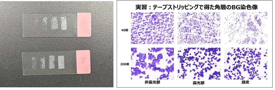 1日目の最初は岡野由利先生から「角層の皮膚科学」の講義からスタート。角層を解析すると、どんなことがわかるのか?について、丁寧にわかりやすく講義をしていただきました。続いて水谷先生から「角層の採取と解析方法」の講義と実習。2日間にわたり盛りだくさんの講義と実習をしていただきました。