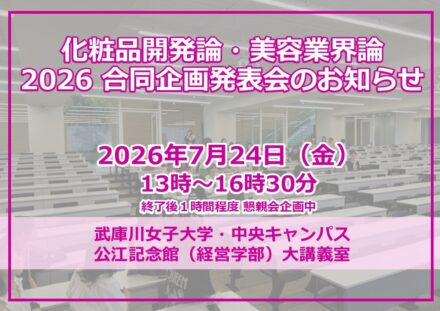 - 化粧品開発論2026-神戸大学社会人MBA卒業生ペアが担当する名物講義―今年も開催です!合同発表会も実施します。